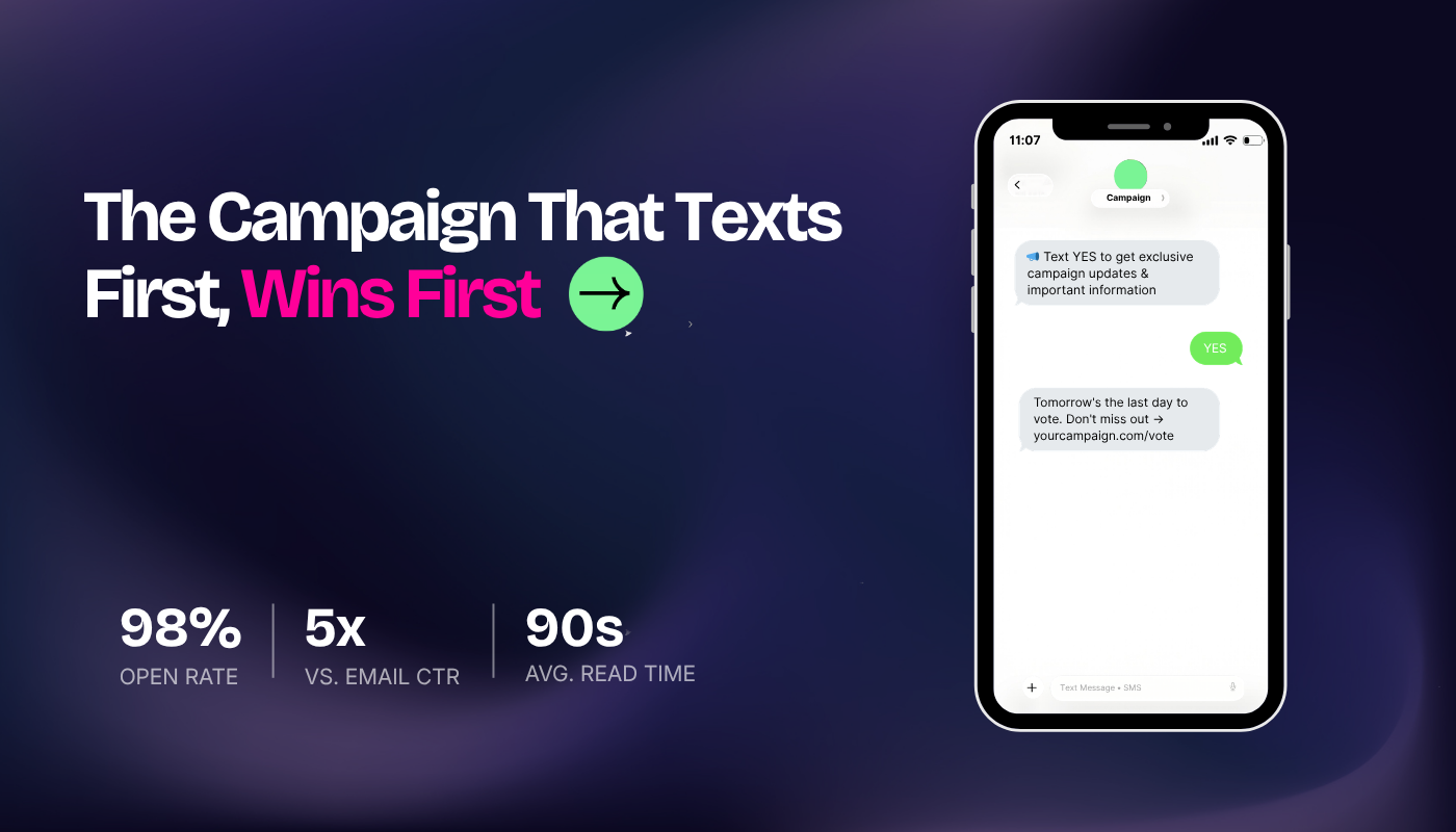 Getting your base to show up to rallies, canvassing shifts, or the polls is where campaigns are won or lost. Text marketing is one of the most proven tools for driving that action.